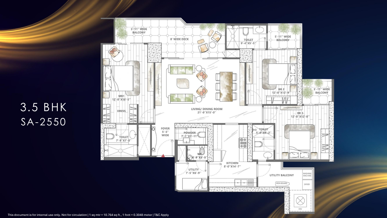 | 3.5 BHK + SR | 1850 – 2050 SQ.FT | Call for Price | 30 : 70 |